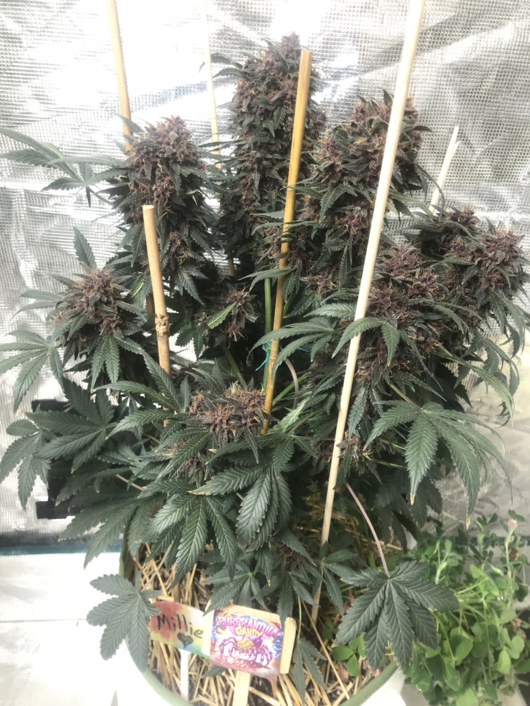 “She grew very well and turned purple very early on, an inky black almost metallic purple. Around day 60 I started noticing a lemon pledge smell from her that faded and was replaced with very sweet purple hard candy- think gobstoppers, sweet tarts, or any hard purple candy. Not specifically grape or a berry, but purple.