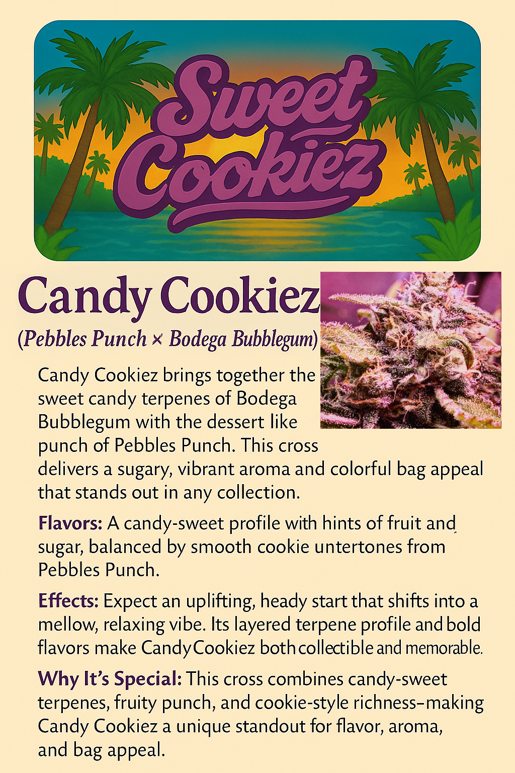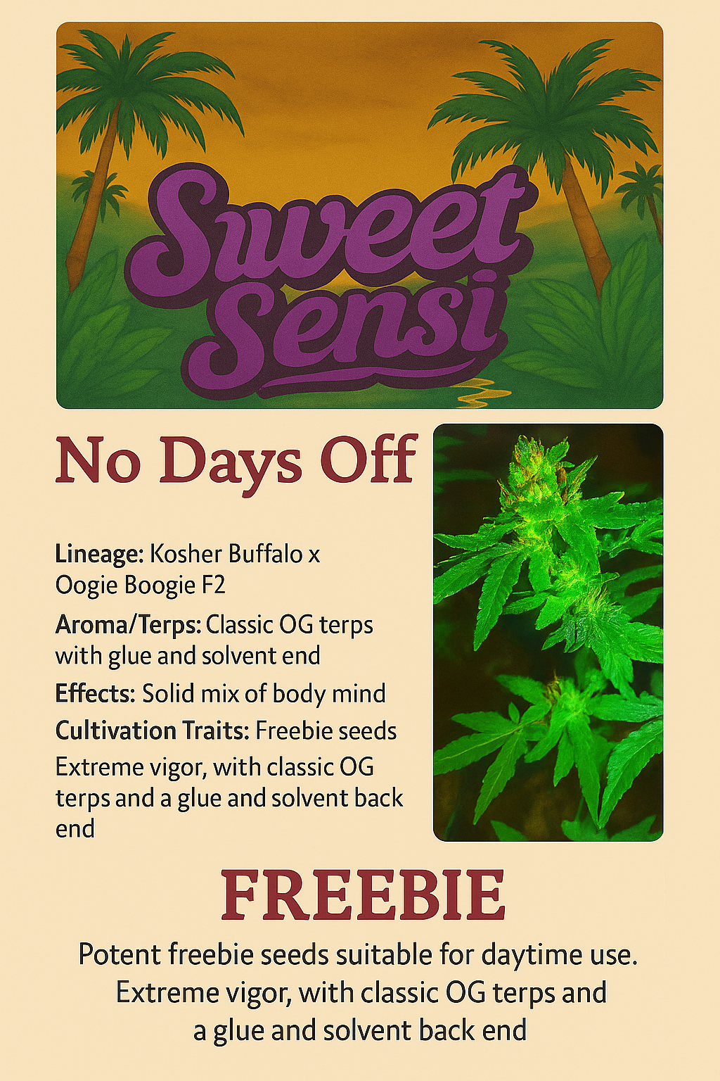 No Days Off or Candy Cookies- regular cannabis seeds, bred by Sweet Sensi brand