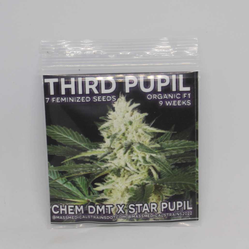 Third Pupil is an extremely intense herb! This limited cross of ChemDMT x Star Pupil has the gnarliest mothball aromas ever. Straight DMT terps mixed with a nose-stinging rancid fuelly skunk that is just brutal and pervasive.